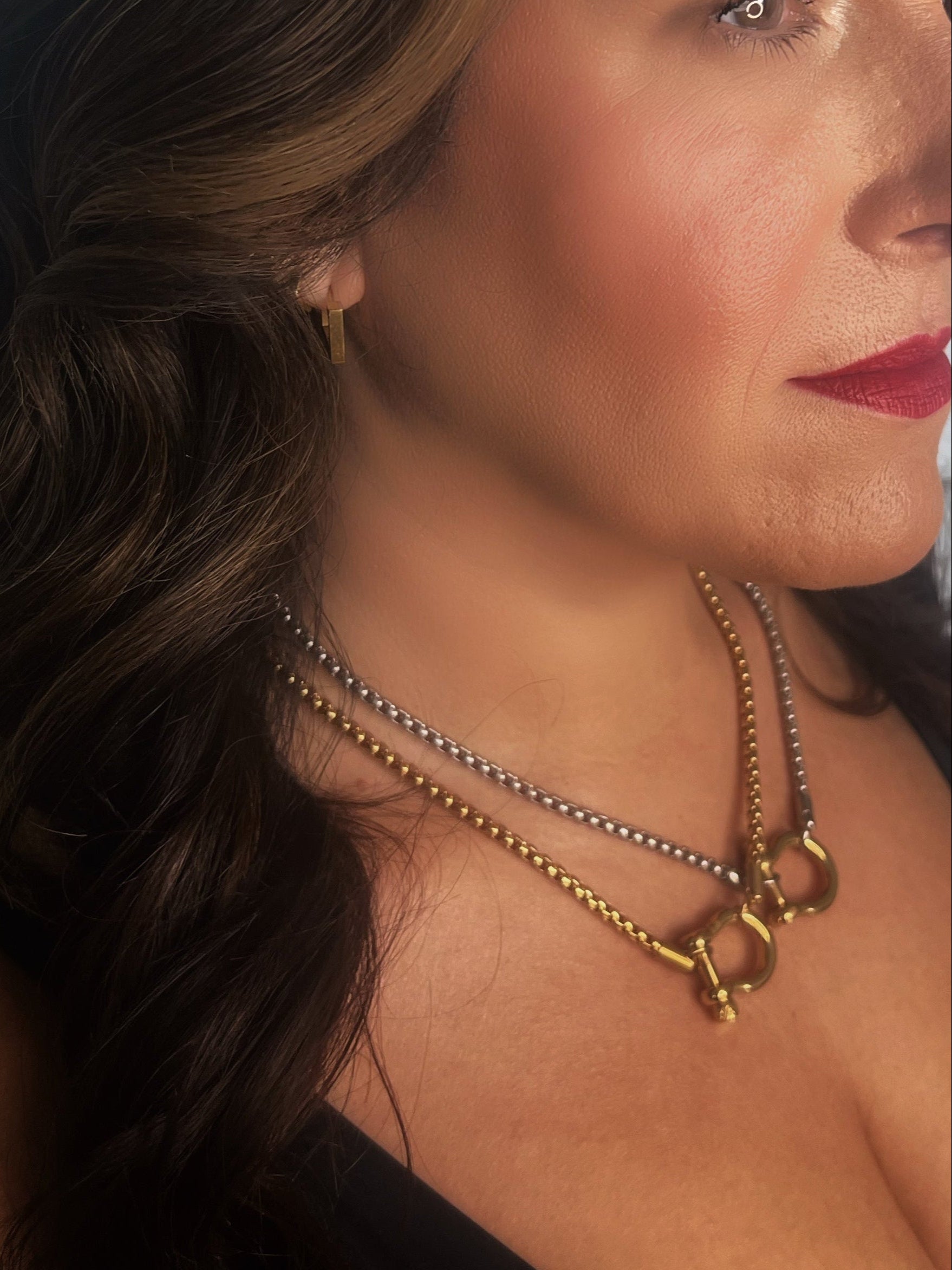 The Giuliana Necklace is a sleek box chain and bold lock-inspired pendant, this piece blends modern edge with timeless elegance.