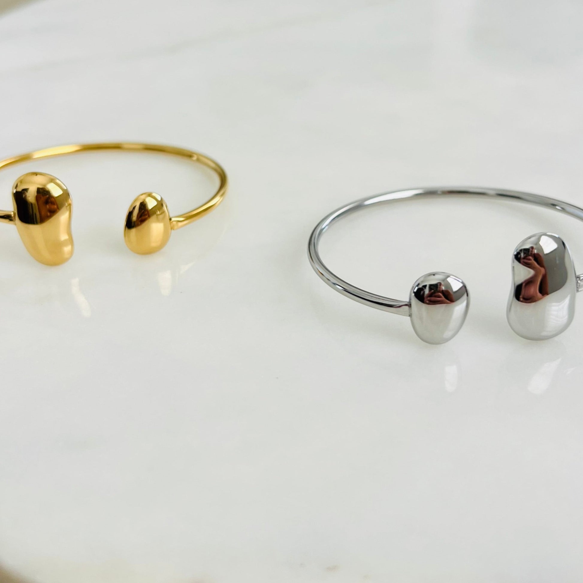 The Marcella Bracelet is designed with polished molten-like ends on a slim open cuff, it balances bold artistry with minimalist elegance. Perfect worn alone as a statement or stacked for a modern layered look.