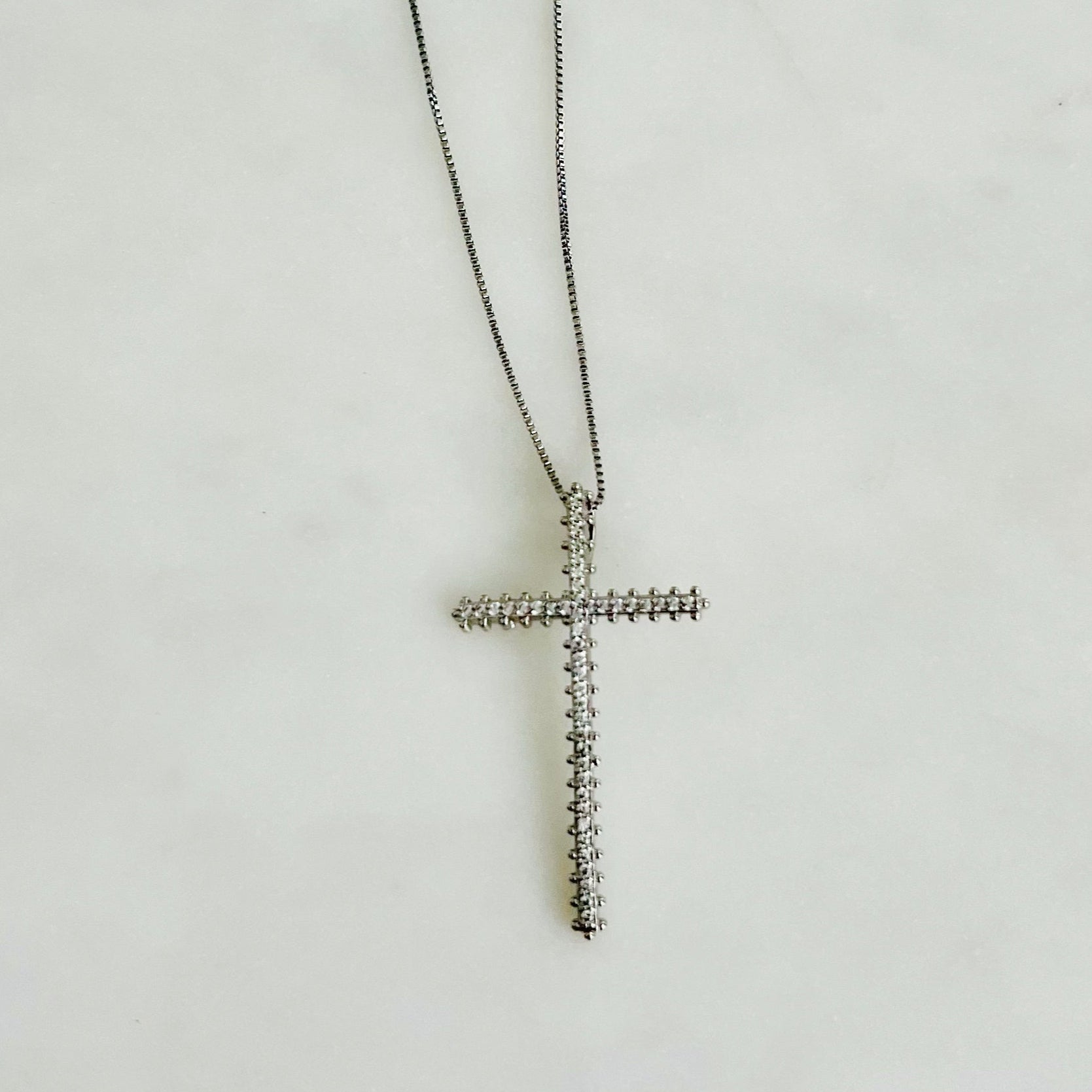 Elegant and timeless, The Maria Necklace features a radiant gold chain paired with a striking cross pendant adorned in sparkling stones. Its refined design captures both faith and fashion, making it a meaningful piece you can wear every day or on special occasions.