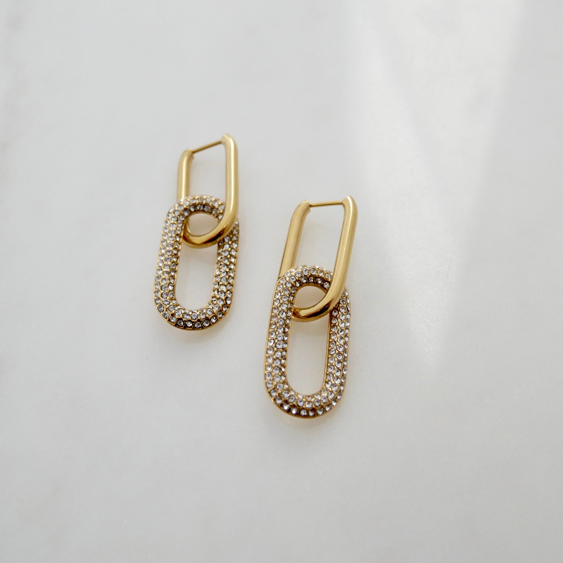 Sleek and dazzling, The Salva Earrings blend modern edge with refined sparkle. Designed with interlocking links, one fully encrusted in micro-pavé CZ stones, these earrings strike the perfect balance of shine and sophistication. Their versatile silver-tone finish makes them a bold choice for both day-to-night wear and special occasions.