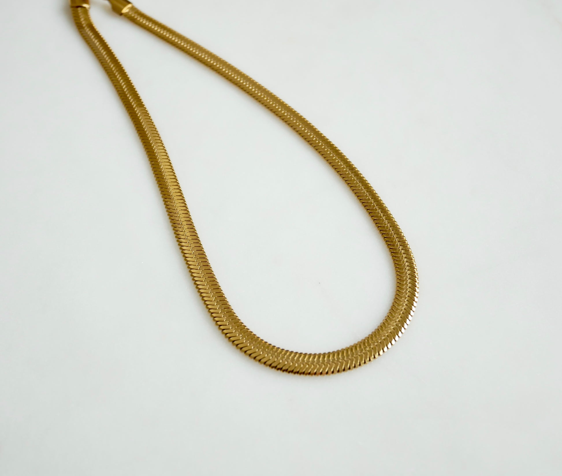The Theresa Necklace is a timeless staple that brings effortless elegance to any look. Its smooth, flat design lays beautifully on the neckline, making it perfect for everyday wear or layering with other pieces.