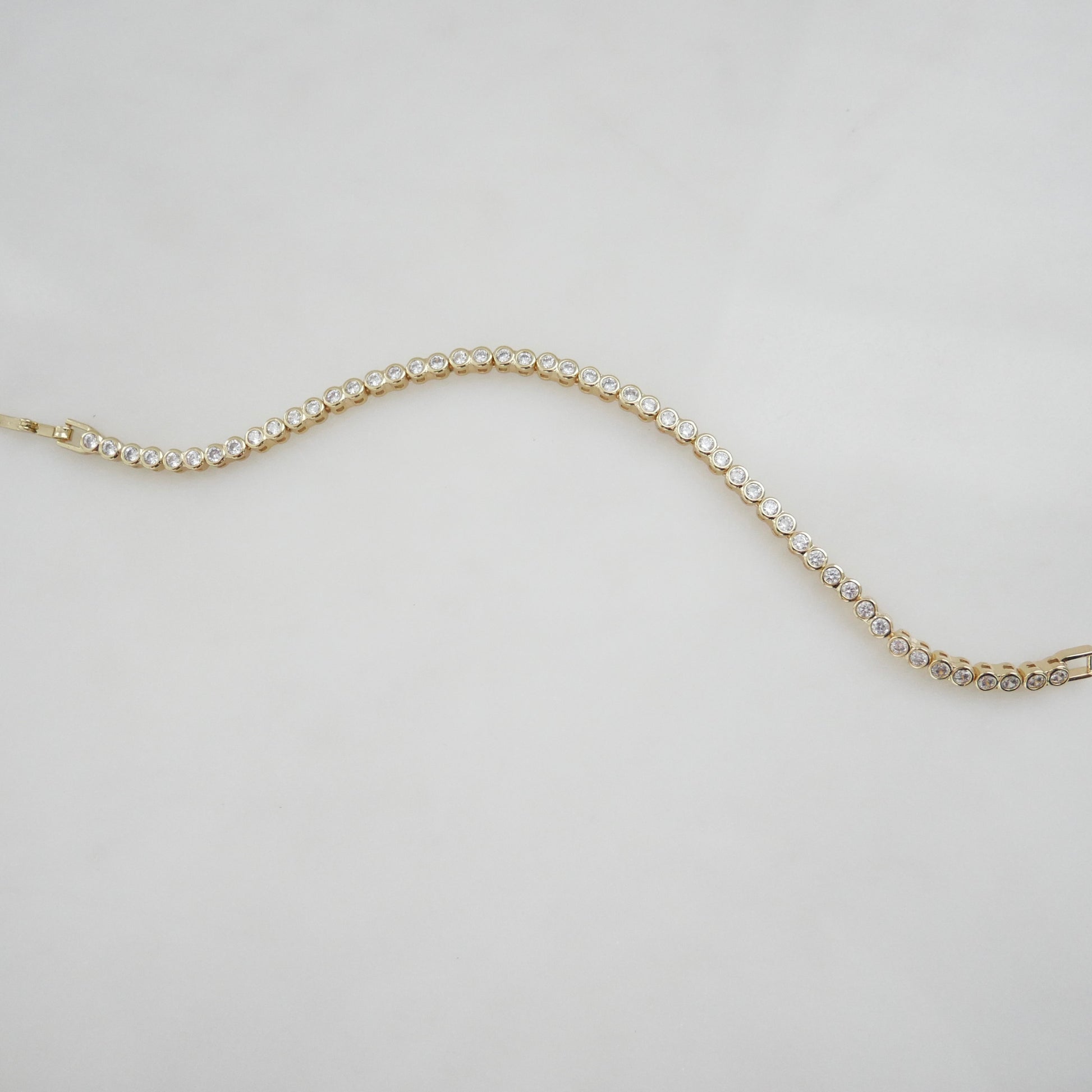 Timeless sparkle meets modern sophistication in the Valentina Tennis Bracelet. Designed with brilliant round-cut stones set in sleek gold bezels, this bracelet captures light from every angle for an elegant, refined shine. Perfect for everyday wear yet luxe enough for special occasions.