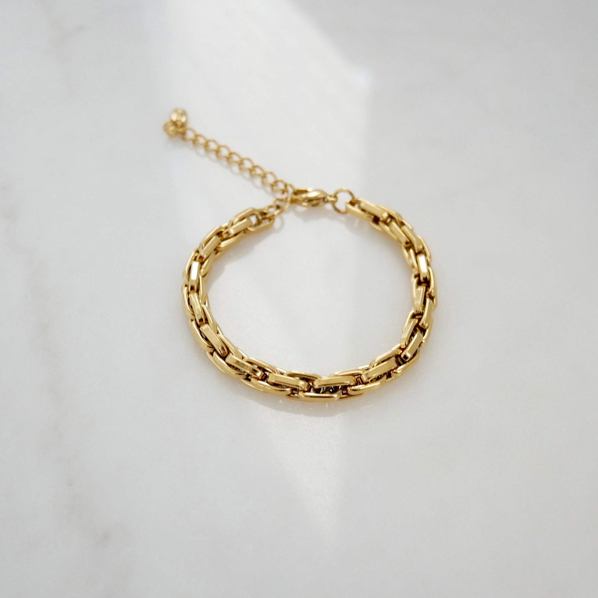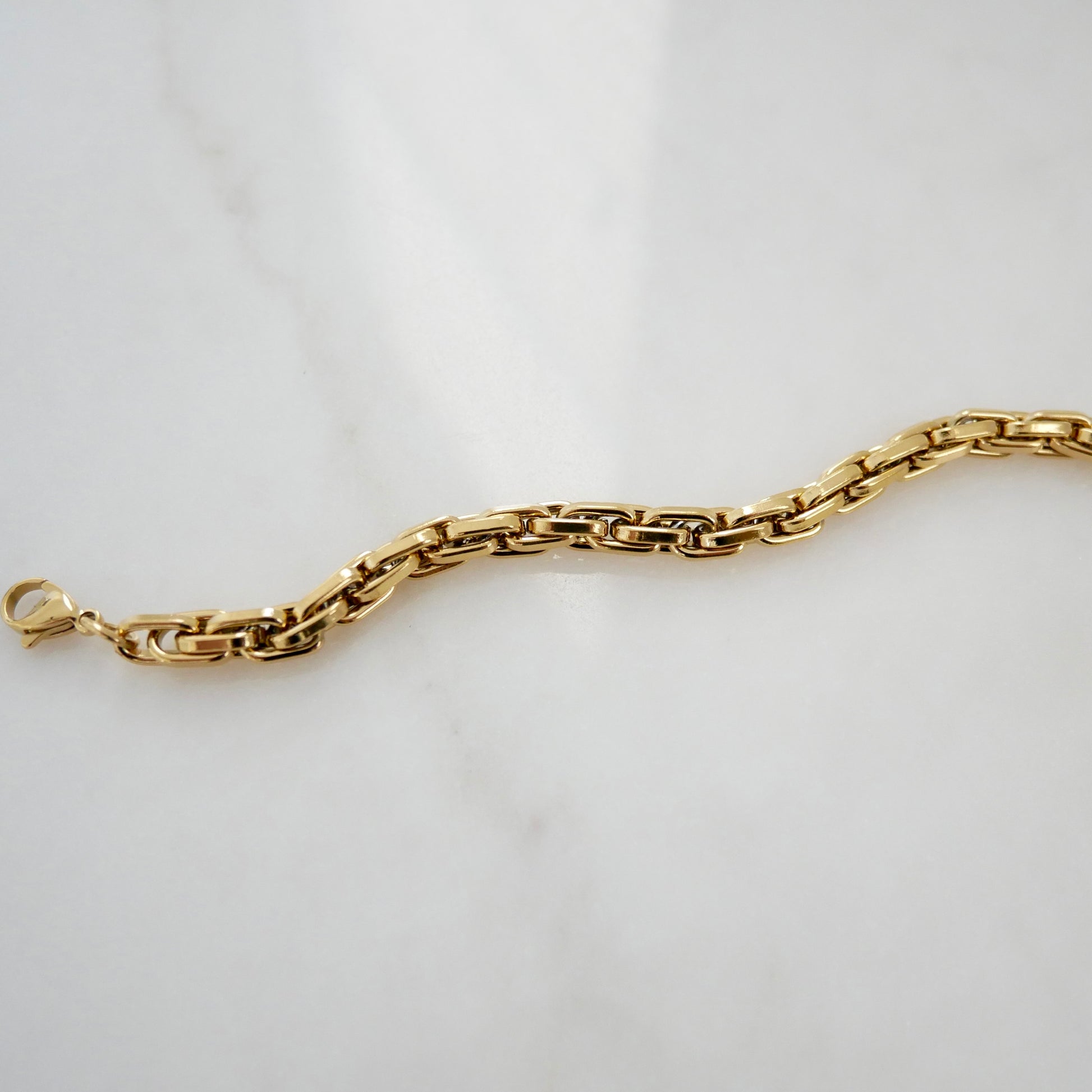 Sleek, structured, and undeniably sophisticated — The Viviana Bracelet embodies modern elegance with an edge. Its bold rectangular link design gives it a sculptural, high-shine look that feels both powerful and refined. Perfect for everyday wear or layered with other favorite bracelets.
